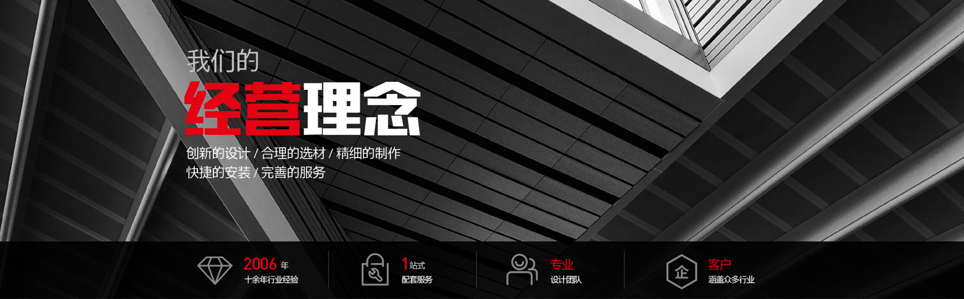 誠信是我們賴以生存的根本。創新的設計,合理的選材,精細的制作,快捷的安裝,完善的服務是我們也就不變的經營理念。我們竭誠為您提供中******,個性化,創意性的作品,我們不斷進取,努力今天的同時也在發展未來,期待與您結成事業上的好伙伴,共圖發展!